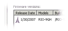 Clicking on the Firmware icon will invoke the firmware panel. The firmware panel displays a list of all available updates that can be uploaded to your RIO device.