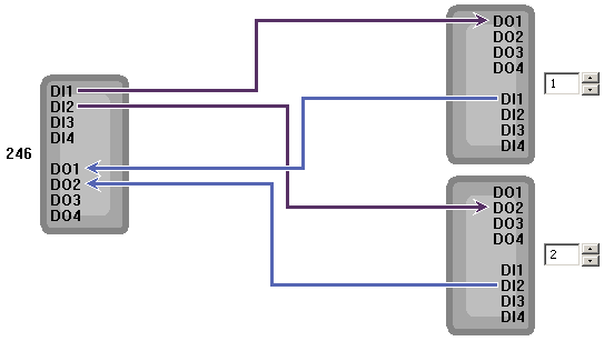 Some RIO devices may be configured to operate in a "mirror mode." If you wish to control equipment at a distance without using a computer as the controller, you can use mirror mode to have the inputs to one RIO device transmitted to control the outputs of another RIO device at a different location.