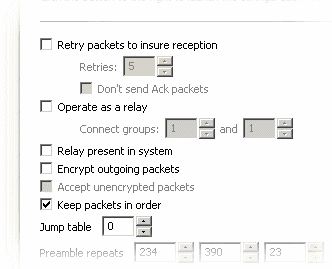 This checkbox causes the radio to send data at a slower pace. This throttling of data gives the relay time to retransmit packets before more is received.