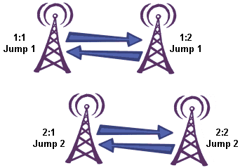 Radios in our first group (1:1 and 1:2) will only need to talk to each other. Radio 1:1 will send all of its messages to 1:2 and radio 1:2 will send all of its messages to 1:1. The same is true for our second group (2:1 and 2:2).