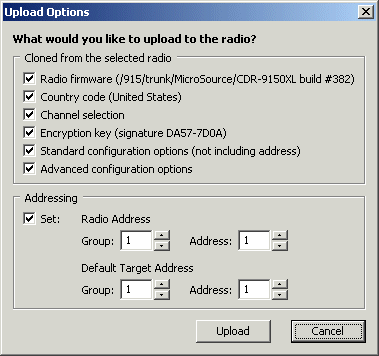 Left-click on the master radio to select it from the list. Now click on the Clone... button. This tells the configuration utility that you want to clone the previously connected radio settings onto the radio that is currently connected.