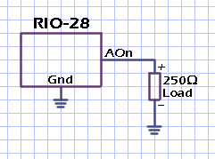 analog outputs; Each output is capable of driving from 4 to 20mA into a 250Ω load.